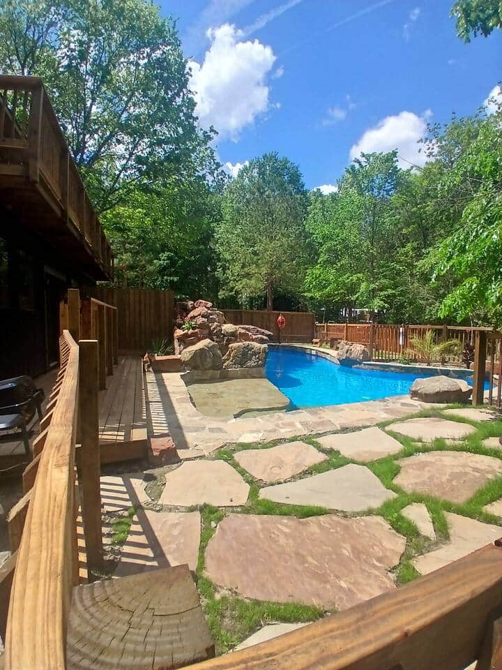 Escape to Magical Forest Resort, a peaceful wooded retreat near Houston surrounded by towering pine and oak trees. Perfect for a family getaway or romantic escape. Enjoy the swimming pool with waterfall, fire pit for s’mores, barbecue grill, fishing creek, and small pond with a kayak. Spot local wildlife, unwind in nature, and make unforgettable memories in a serene forest setting.